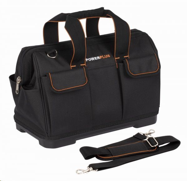 Brašna na nářadí značky Powerplus je vyrobená z kvalitní pevné látky. Speciálně tvarované kapsy přehledně roztřídí vaše nářadí.