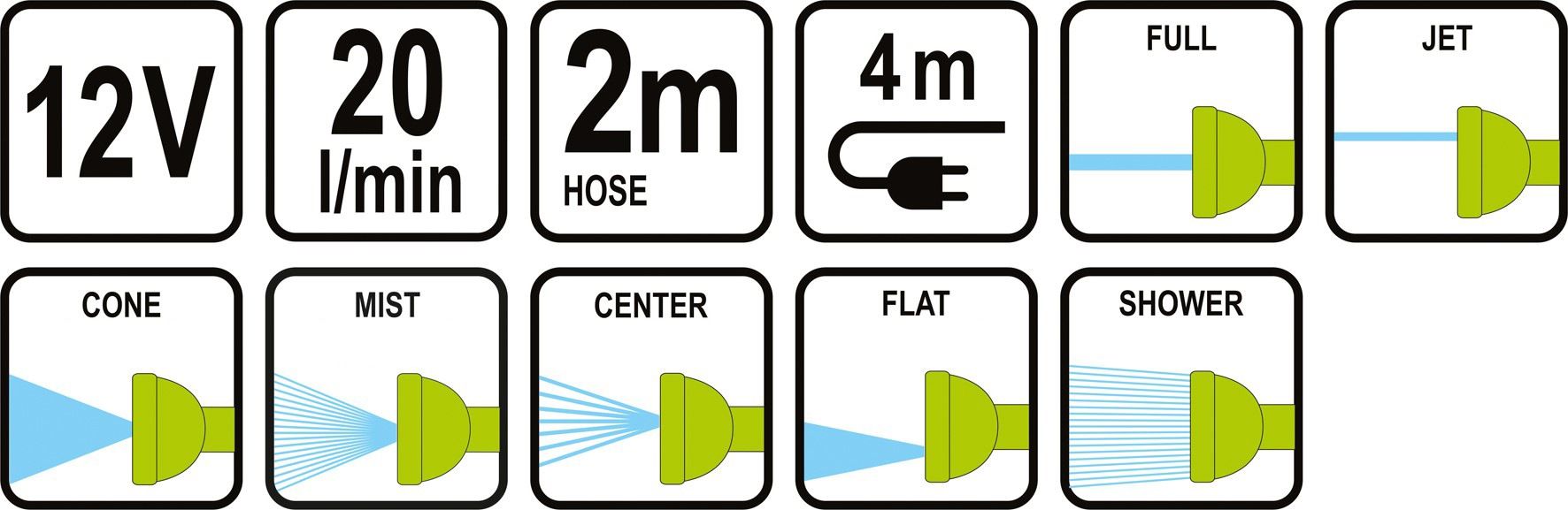 Součástí balení je vodní vak a komplet postřikovací pistole se 7 funkcemi.