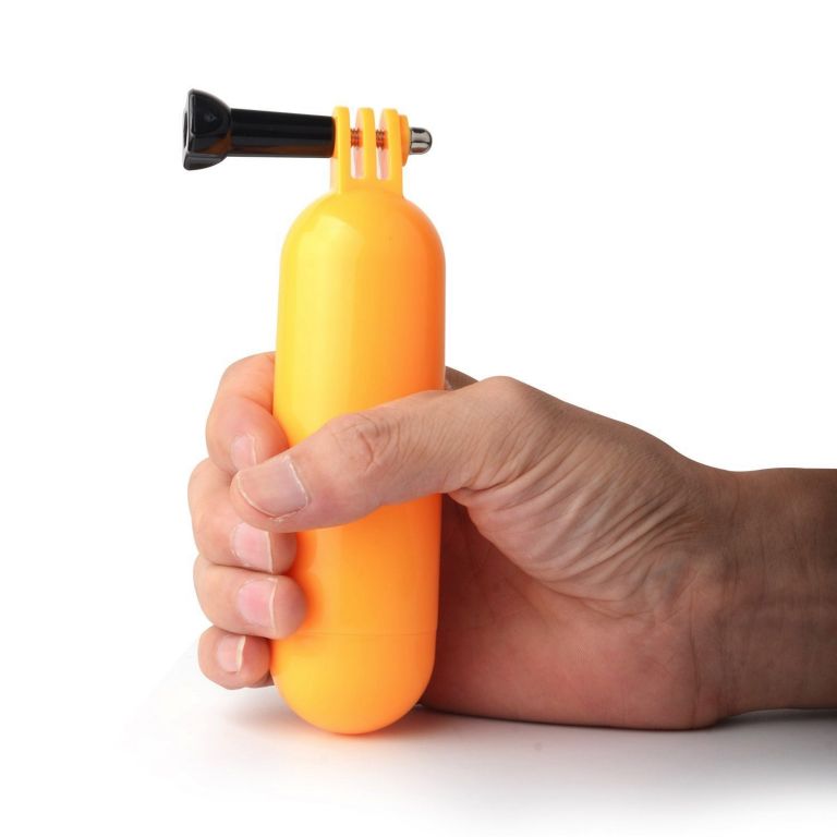 Velikost plováku je přizpůsobena pro pohodlné držení v ruce. Aby vám kamera na plováku neuplavala, je opatřen poutkem na zápěstí. Díky jasné žluté barvě je plovák i pod hladinou dobře vidět, takže jej jen tak neztratíte.