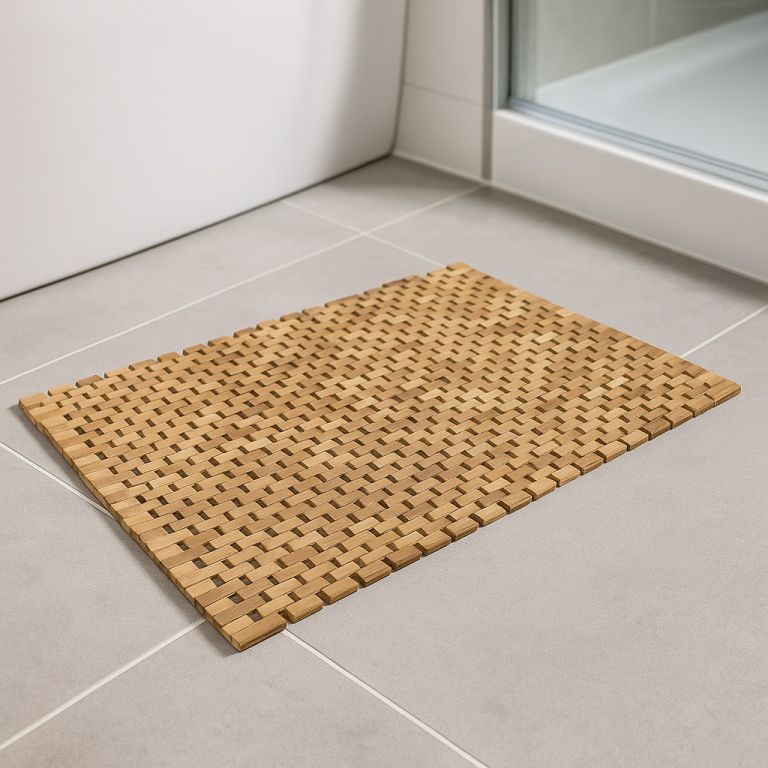 Přirozený styl pro každou místnost s teakovou protiskluzovou předložkou s gumovými podložkami zajišťuje bezpečnost a jedinečnost díky ruční výrobě.