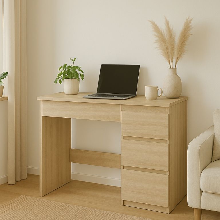 Kompaktní pracovní stůl, který si najde místo i v menším pokoji. Ať už ho postavíte do dětského nebo studentského pokoje, nebo ho využijete jako pracovní koutek doma, oceníte jeho praktičnost i jednoduchý vzhled v dekoru dub artisan. Čtyři zásuvky poskytnou prostor pro školní pomůcky, dokumenty i drobnosti, které chcete mít vždy po ruce – a přitom mimo dohled.