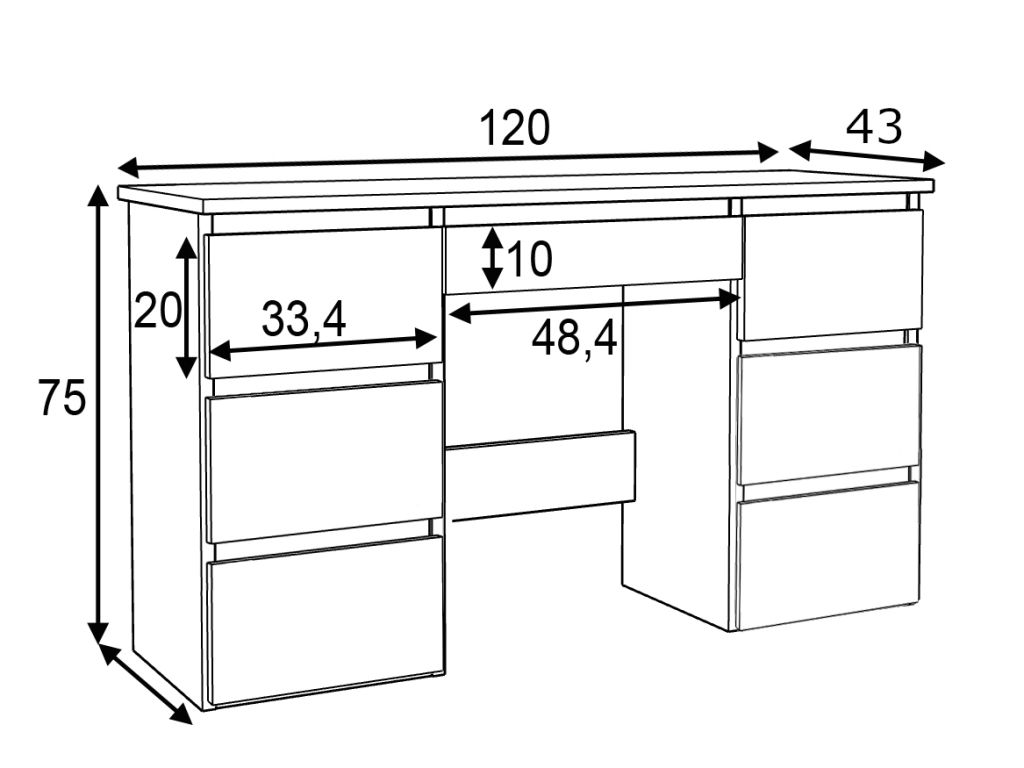 Psací stůl SmartSpace se zásuvkami do pokoje. Tento stůl je ideální pro dospívajícího ke studiu i pro dospělého na práci. Je velký a velmi prostorný, má až 7 šuplíků. Další výhodou školního psacího stolu je absence úchytek, díky čemuž dokonale zapadne do moderních interiérů. Psací stůl je určen k umístění ke stěně, v zadní části nedokončený. Na velkou stolovou desku se vejde počítač, notebooky, knihy a další příslušenství potřebné ke studiu. Při domácích školních pracích je nezbytný dobrý, ergonomický stůl. Pomáhá dítěti udržovat správné držení těla a nabízí dostatek úložného prostoru. Poslouží nejen usilovnému studentovi, ale také fanouškovi počítačových her. Školní stůl Beta 4 je pevně vyroben, takže vydrží nepoškozený po mnoho let. Při práci z domova je velmi důležité zvolit ten správný stůl. Jídelní stůl určitě není vhodným místem k práci. Má dostatečně velkou stolovou desku o rozměrech 120x45 cm a 7 zásuvek na odkládání.