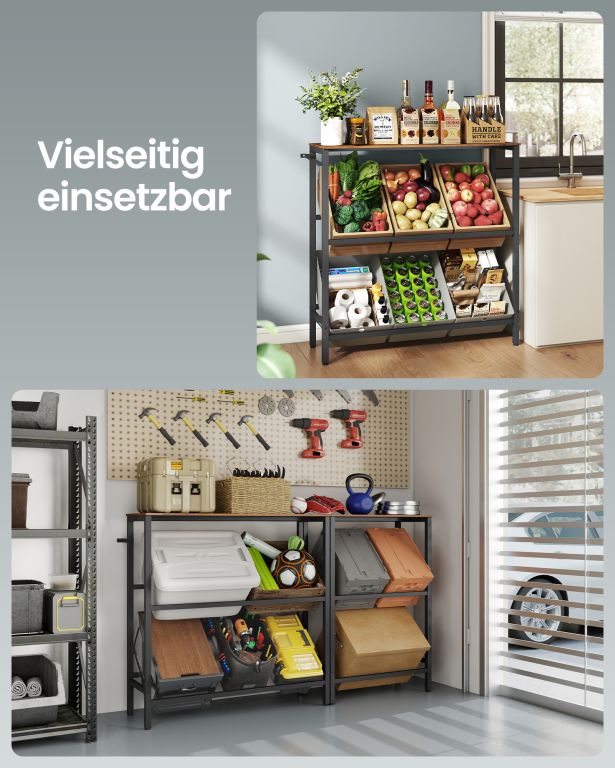 Vneste do svého domova pořádek a styl s tímto multifunkčním regálem na přepravky. Ideální pro kuchyň, spíž i obývací pokoj, kde oceníte jeho vysokou nosnost a stabilitu. Skvěle poslouží na nápoje, ovoce, zeleninu i drobnosti, které chcete mít vždy po ruce.