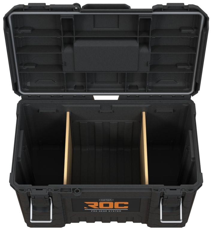 ROC Pro Gear 2.0 box na nářadí: IP65 těsnění proti vodě a prachu. Stohovatelné s bočními držadly, kompatibilní s Pro Gear 1.0 a řadou 2.0. Poloviční stopa připojení. Odolné západky. Pohodlná rukojeť s měkkým držadlem. Uzamykatelné (zámek není součástí dodávky). Součástí balení je organizér malých dílů pro optimální skladovácí flexibilitu. Montážní, nástěnné držáky jsou součástí dodávky. Objem 37,4l, maximální celková nosnost: 54 kg, maximální celková nosnost na zavěšení 25 kg.