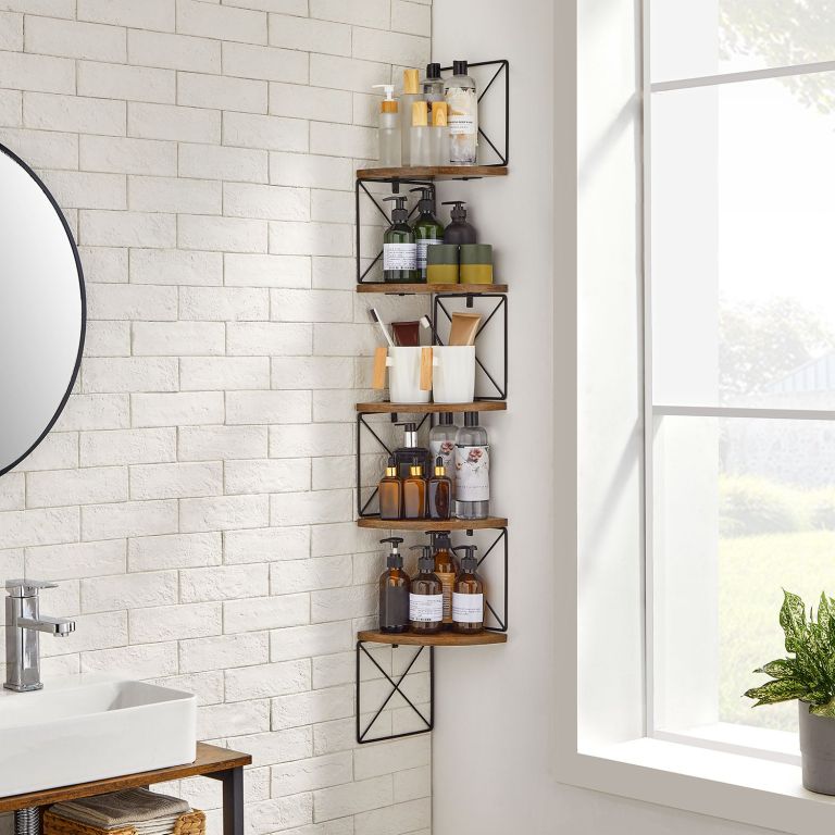 Stylová nástěnná rohová police VASAGLE s 5 patry kombinuje industriální design, pevnou ocel a snadnou montáž.