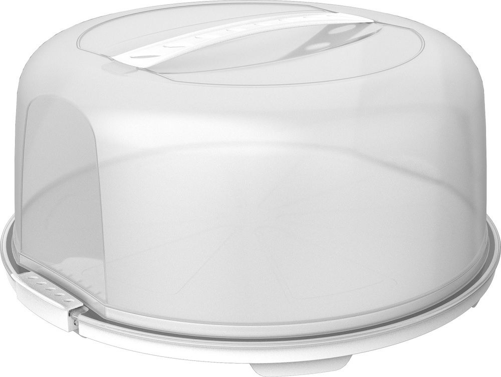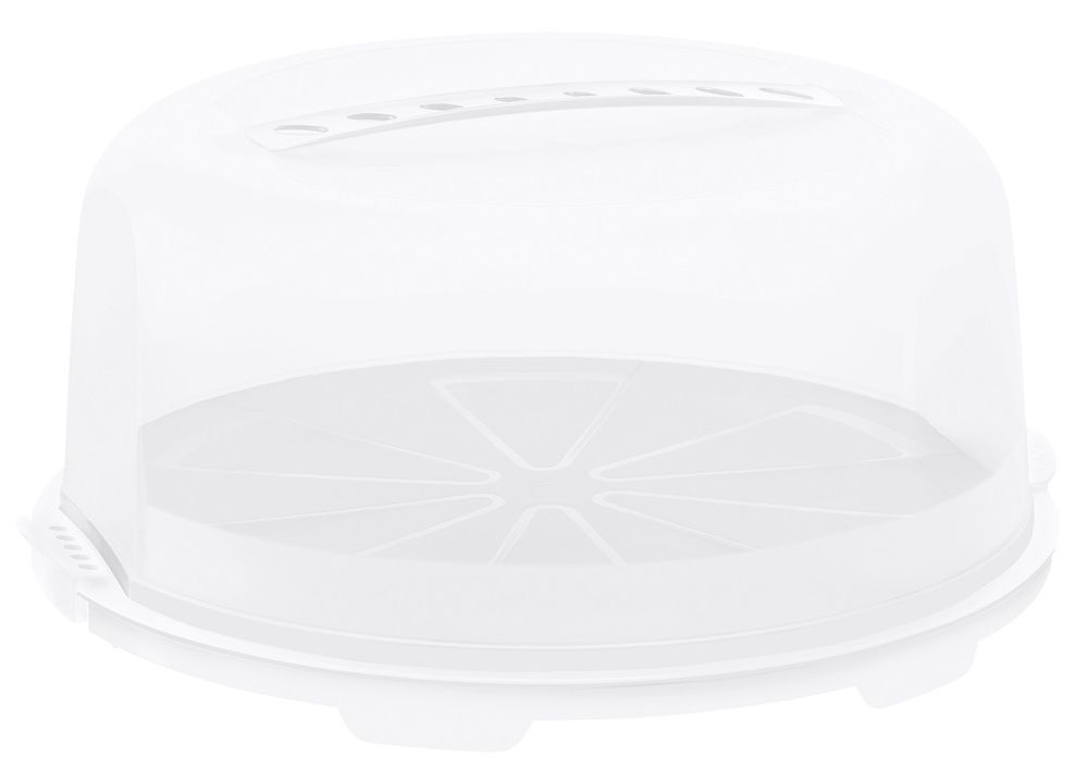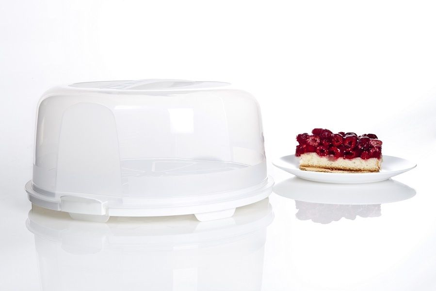 Kulatý plastový podnos s poklopem, ve kterém uskladníte a přepravíte dort či koláč. Praktické držadlo umožňuje snadný přenos boxu.