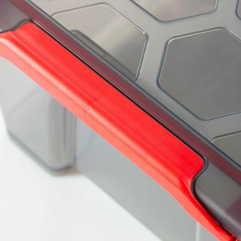 Plastový box s víkem. Díky gumovému těsnění ve víku, je box vodotěsný. Box je opatřen tlumiči nárazů, které zajišťují stabilitu a chrání víko před prasklinami. Boxy lze stohovat na sebe. Praktické klipy a těsnění chrání obsah před vlhkostí, škůdci a prachem. Kvalitní provedení švýcarské značky Rotho.