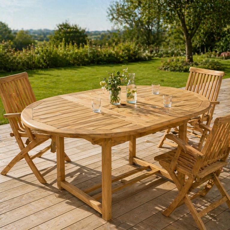 Rozkládací zahradní stůl z týkového dřeva vnese na terasu, balkon nebo do zahrady přirozenou eleganci a příjemnou atmosféru pro společné chvíle u jídla. Oválný tvar působí vzdušně a přívětivě, zatímco krásná kresba dřeva dodává stolu nadčasový charakter. V kratší variantě je ideální pro běžné každodenní stolování, po rozložení ale snadno vytvoří více místa pro rodinnou návštěvu, letní oslavu nebo víkendové posezení s přáteli.