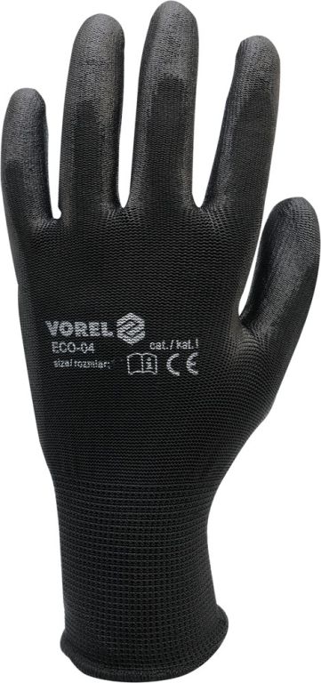 Rukavice jsou zhotoveny z polyesteru (steh 13) potaženého polyuretanem a zakončené odolným lemem.