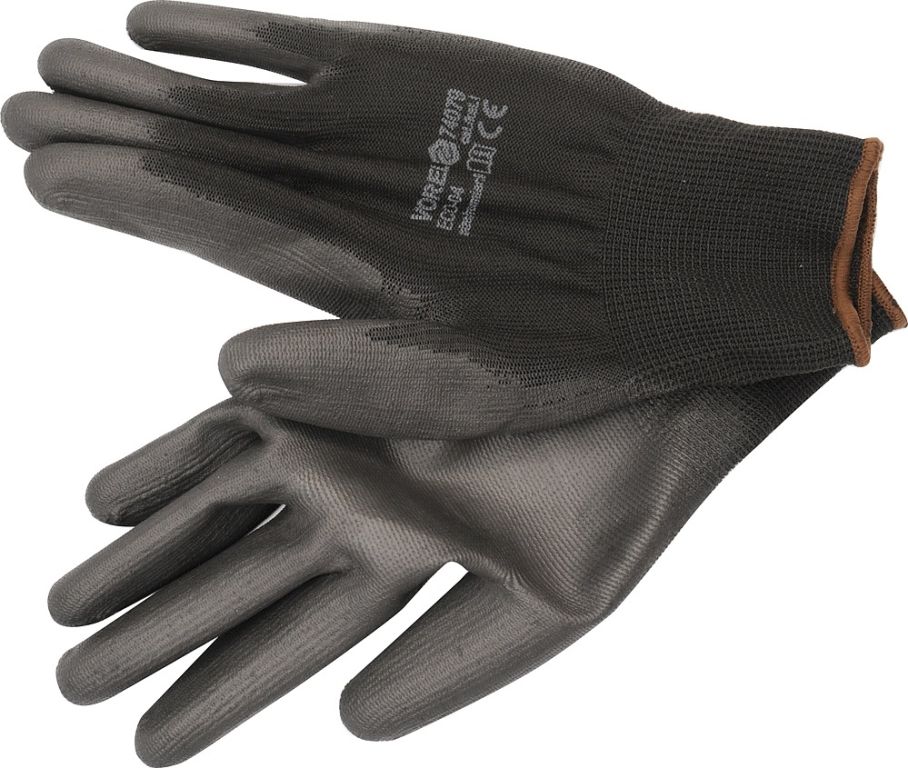 Rukavice jsou zhotoveny z polyesteru (steh 13) potaženého polyuretanem a zakončené odolným lemem.