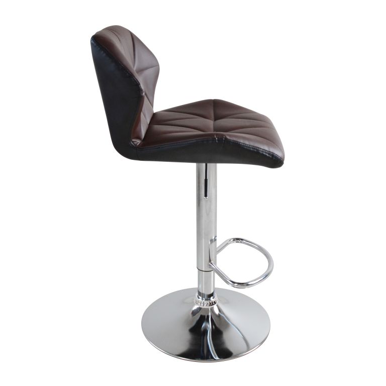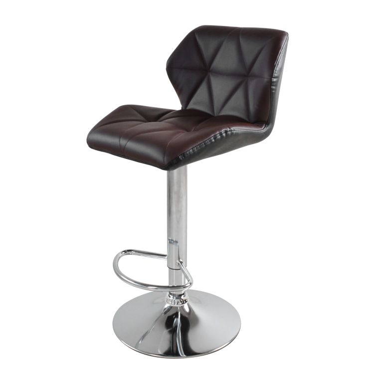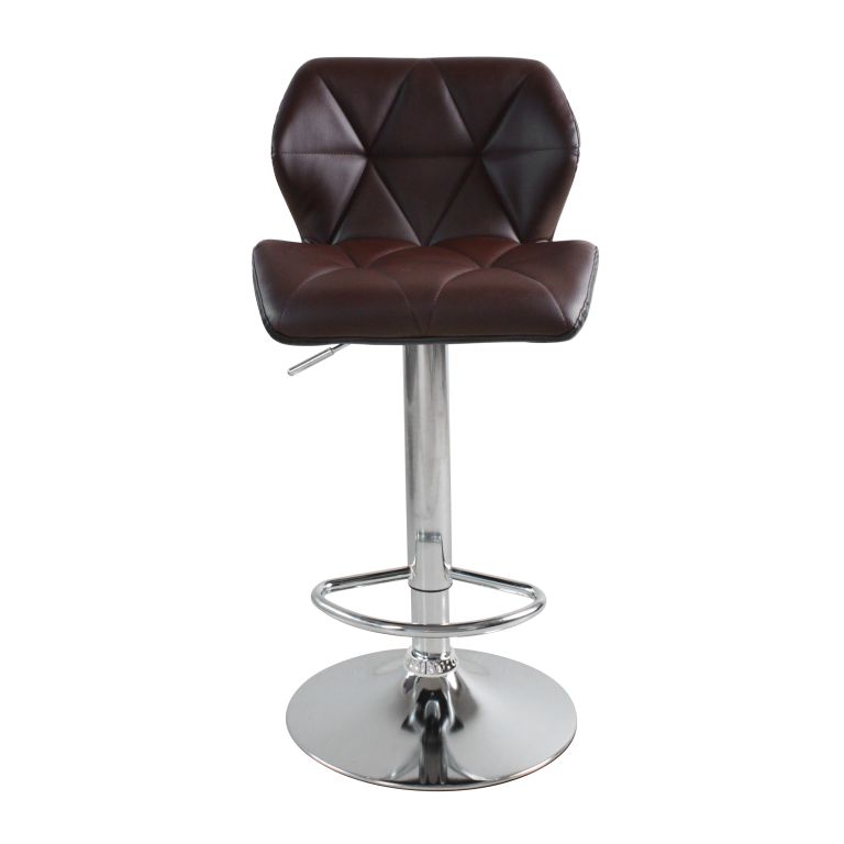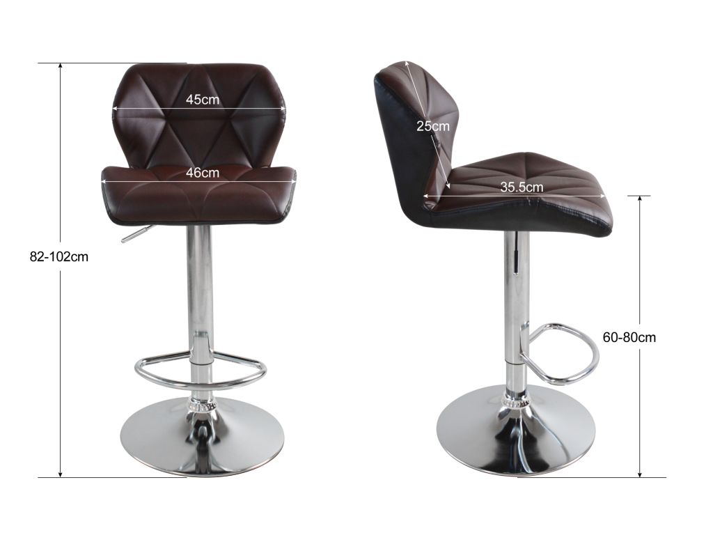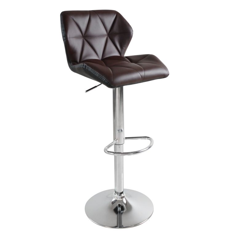 Pohodlí, styl a funkčnost – to vše spojuje tato sada dvou barových židlí v elegantní hnědé barvě. Sedák potažený kvalitní PU kůží vyniká výrazným geometrickým prošitím a ergonomickým tvarem, díky kterému si užijete komfort i při delším sezení. Chromovaná podnož dodává židlím moderní vzhled a perfektní stabilitu.