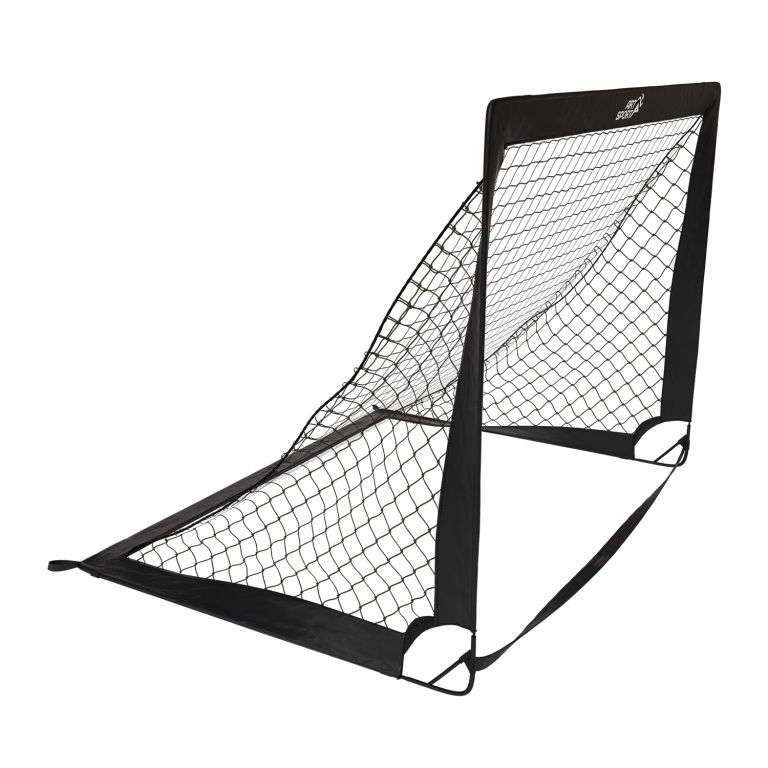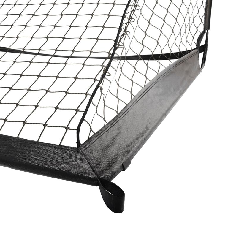 Každá branka má rozměry 120 × 90 × 90 cm a lehkou, přitom pevnou konstrukci z fiberglasových tyčí. Hustá polyesterová síť s oky 5 × 5 cm a odolným lemem z tkaniny Oxford 420D spolehlivě zachytí míč. Díky zemním kolíkům drží set jistě v trávě, protiskluzová podložka pomůže na tvrdém povrchu. Po hře branky jednoduše složíte do transportní tašky nebo batohu a můžete je vzít na další trénink či výlet – set je vždy připraven na další zápas.