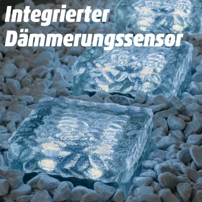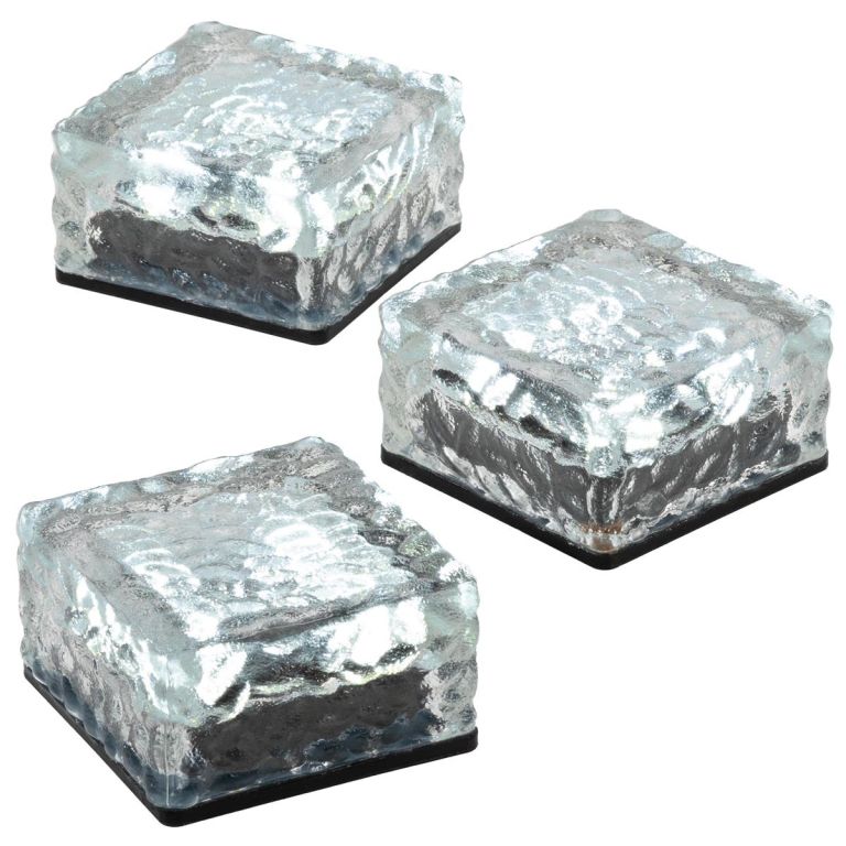 Sada 3 ks solárního osvětlení - skleněná kostka - bílá