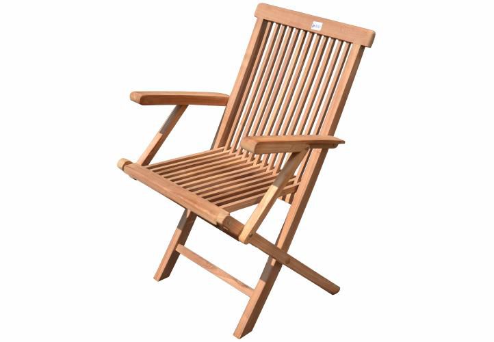 Masivní skládací židle s vysokým opěradlem je vyrobena z týkového dřeva.