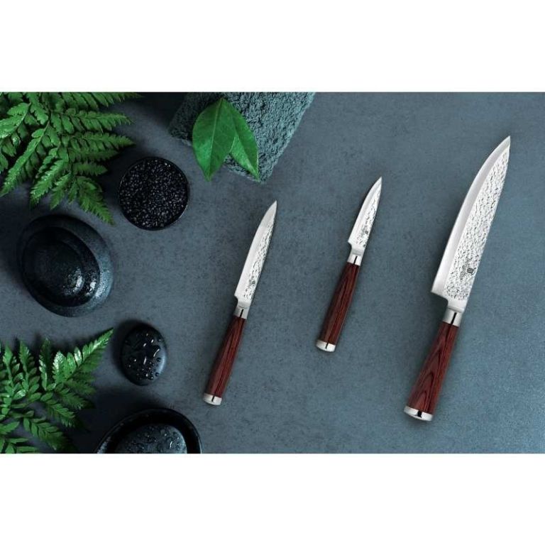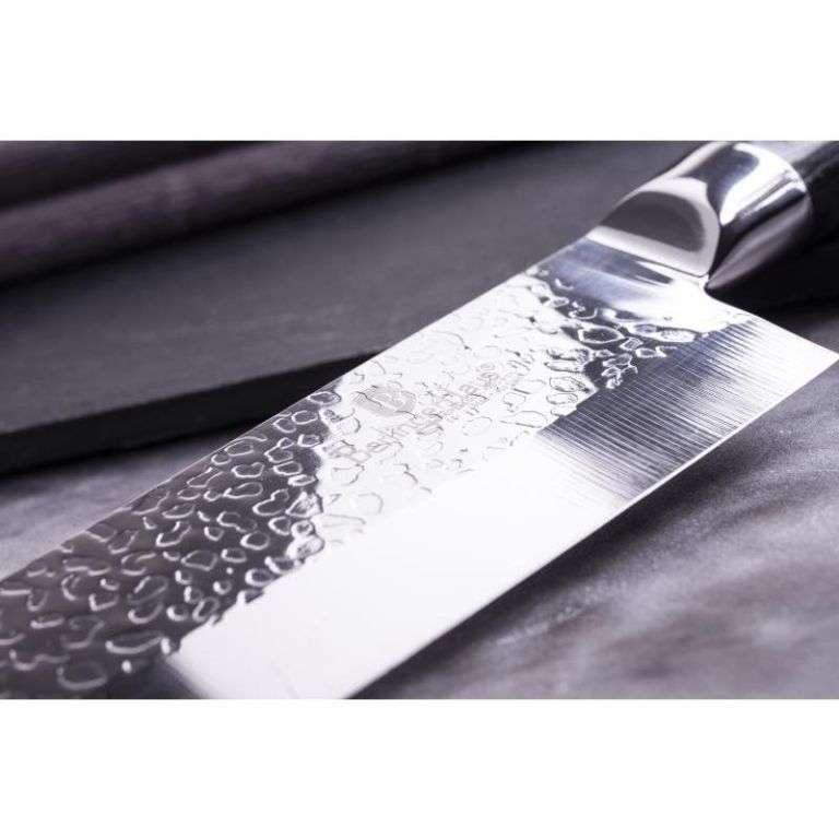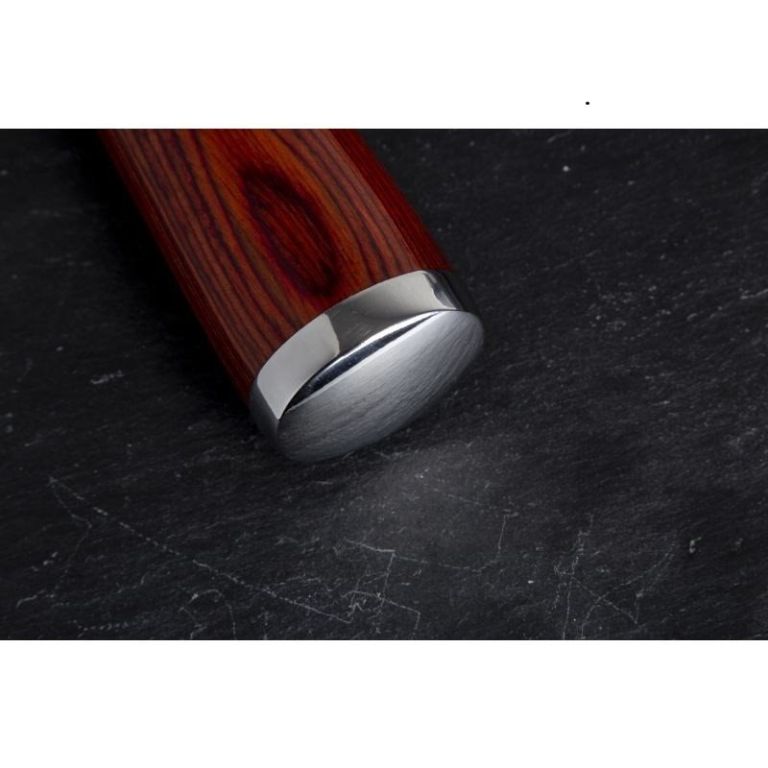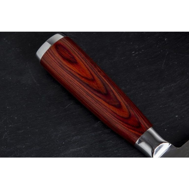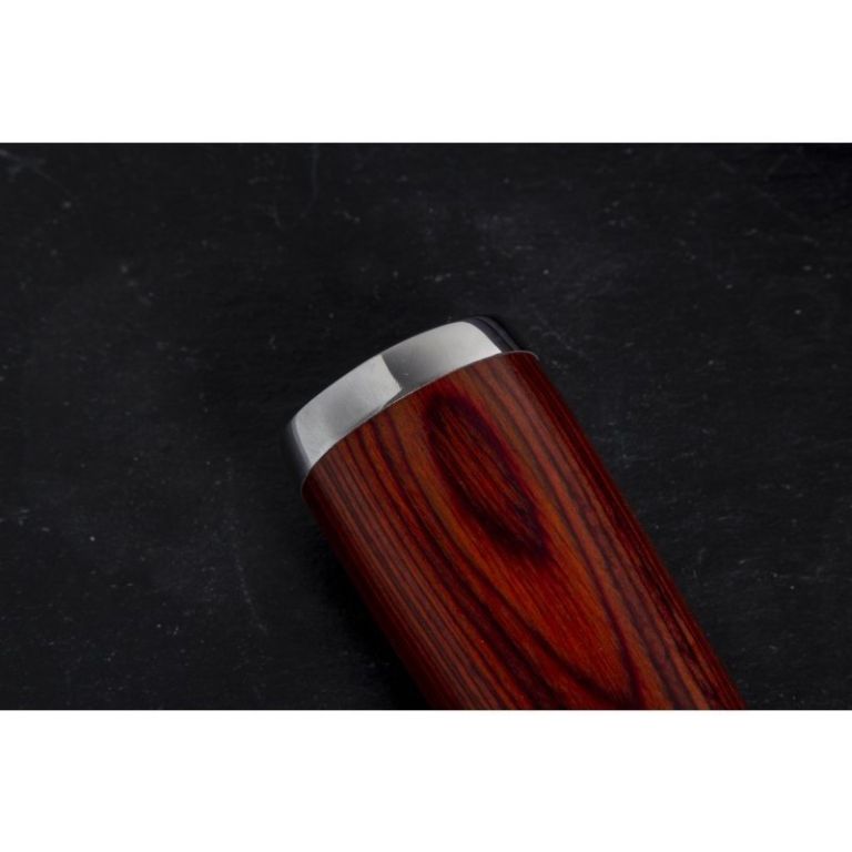 Sada Berlingerhaus Ebony Line Rosewood rozšíří vaše kuchyňské vybavení. V dárkové magnetické krabičce najdete celkem 3 ostré nože. Usnadníte si s nimi přípravu potravin k vaření. Čepel se vyrábí z kvalitní nerezové oceli a je zdobená zrcadlovým kladívkovým efektem. Ten společně s dřevěnou rukojetí doplňuje elegantní vzhled nožů. Díky dvojitému kování vydrží nože ve vaší domácnosti po dlouhou dobu. Kov se totiž táhne od čepele přes celou rukojeť. Dodává jí pevnost a odolnost. V balení se nachází šéfkuchařský nůž, kuchyňský nůž a univerzální nůž. Šéfkuchařský nůž se hodí na rozřezávání a krájení masa, ovoce a zeleniny, filetování ryb a sekání bylinek. Jeho širokou čepel využijete při přenášení drobných surovin do hrnce či pánve. S kuchyňským nožem se pustíte do loupání či škrábání zeleniny a ovoce a krájení menších potravin (sýrů, jahod a dalších podobných surovin). Poslední nůž má způsob použití již v názvu. Patří mezi univerzální kuchyňské pomocníky. Nakrájíte s ním v podstatě vše, co potřebujete – ovoce, zeleninu, ryby i maso.