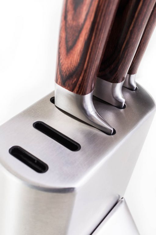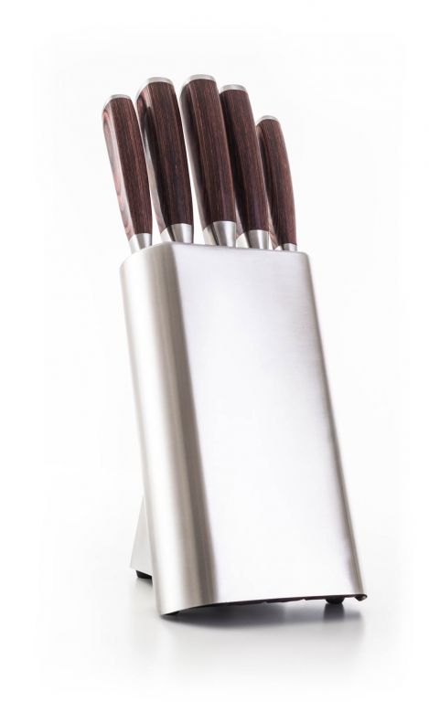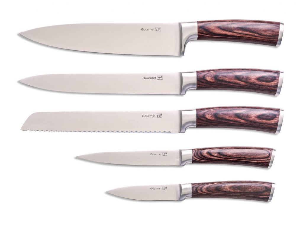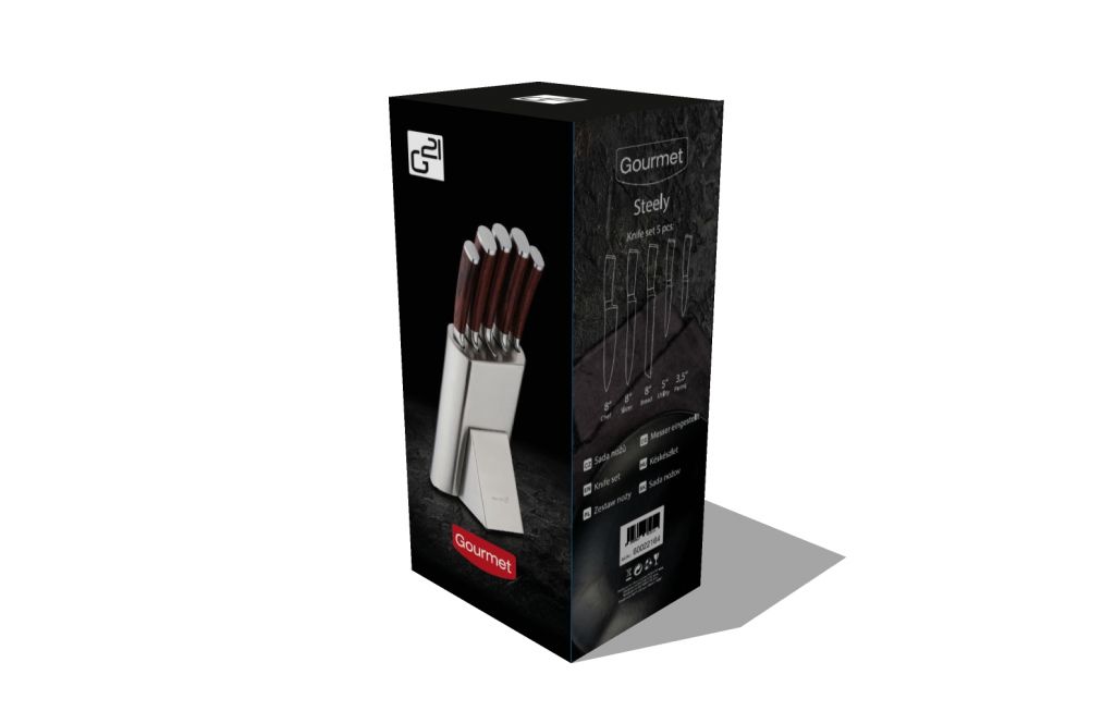 Nůž je jedním u nejpoužívanějších kuchyňských nástrojů. Hledáte ideální sadu kuchyňských nožů? Právě jste ji našli. Prohlédněte si dokonale ostré a praktické nože pro všechny situace. Přesvědčte se. Sada pěti vysoce kvalitních nožů G21 Gourmet Steely s vámi bude krájet, ořezávat i porcovat. Z běžného vaření vytvoří zábavu, kterou ocení každý správný kuchař i nenasytný strávník. Čepele nožů G21 Gourmet Steely jsou vyrobeny z kvalitní oceli 5CR15, která je využívána například i pro výrobu loveckých nožů. Díky použitému materiálu je čepel ostrá, odolná, pevná a bude vám sloužit dlouhé roky. Rukojeti jsou vyrobeny z extra pevného, odolného materiálu nazývaného Pakka wood, při jehož výrobě je dýha z tvrdého dřeva napuštěna teplem tvrzenou pryskyřicí. Výsledkem jsou pevné rukojeti, které nepodléhají zkáze času. Hladké, rovné, čisté linie těchto nožů se stanou ozdobou každé kuchyně.