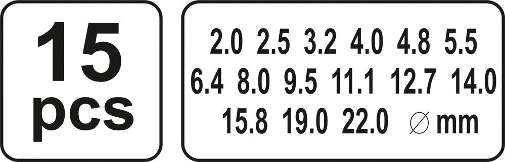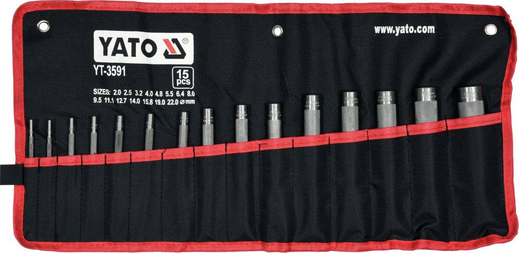 Děrovače jsou vyrobeny z kvalitní uhlíkové oceli, což zaručuje dlouhou životnost a odolnost. 15 různých průměrů (2–22 mm) pokryje všechny vaše potřeby. Snadná údržba a přehledné uložení v syntetickém pouzdře zajišťují pohodlné používání i skladování.