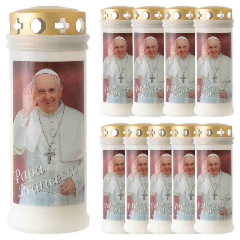 Sada smutečních svíček Papež František, bílá, 17 cm, 10 ks