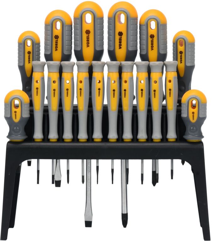 Sada šroubováků, která vás nikdy nenechá ve štychu. Díky široké škále velikostí a tvarů najdete vždy ten správný nástroj pro každou situaci. Ergonomické rukojeti zajišťují pohodlný úchop i při delší práci a moderní design potěší každého domácího kutila i profesionála.