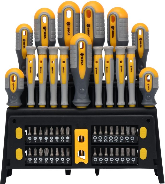 sada šroubováků se širokou škálou velikostí zajišťuje všestranné použití a schopnost dosáhnout i těžko dostupných míst.