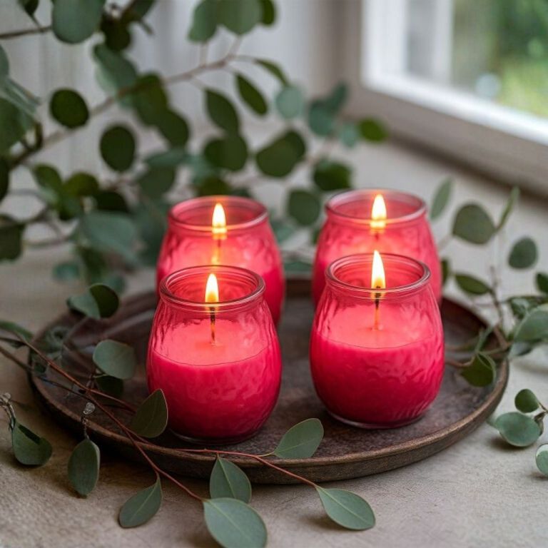 Sada skleněných svíček v růžové barvě je všestranně použitelná, ať už v gastronomii, jako narozeninové svíčky nebo prostě jako dekorace do domácnosti. Tato světla se vyznačují tím, že hoří rovnoměrně a lze je bez problémů znovu zapálit. Po vypálení lze sklo samozřejmě znovu použít. Svíčka je bez vůně a vyzařuje silným plamenem příjemné jasné a teplé světlo pro příjemnou atmosféru, kterou opět podtrhuje růžové sklo.