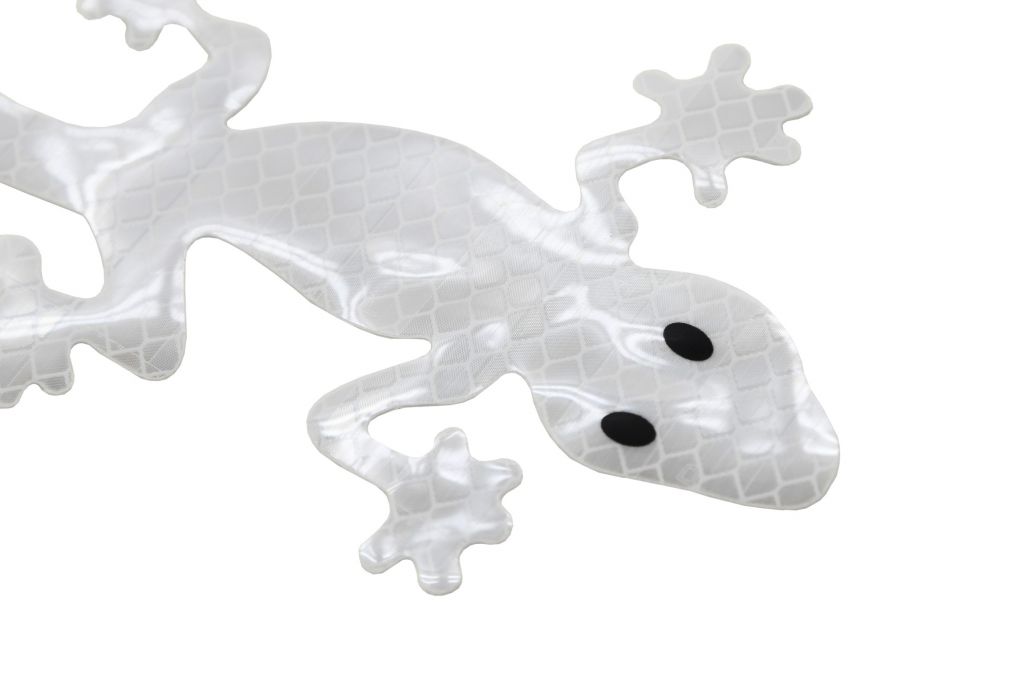 Samolepící dekor s reflexními vlastnostmi v podobě Geckona (ještěrky). Samolepka je vhodná k nalepení na očištěné neporézní povrchy. Dekor je možné nalepit i na mírně tvarované povrchy. Přilepení je snadné a rychlé.