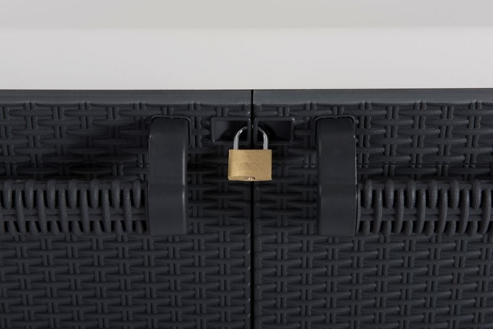 TĚSNĚNÍ: Díky gumovému těsnění je skříňka odolná vůči nepříznivým povětrnostním podmínkám, což z ní činí ideálního společníka pro každodenní použití venku. Udržujte svou zahradu uklizenou a vždy připravenou k relaxaci a zábavě.