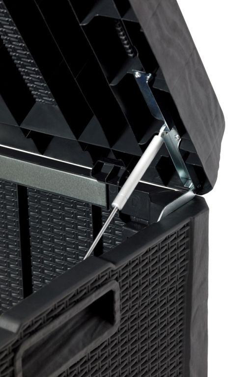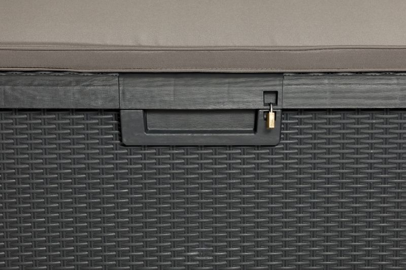 ELEGENCE A STYL: Díky imitaci ratanového povrchu se tento box stává elegantním doplňkem Vaší zahrady. Santorini v grafitové barvě je více než jen úložný box, je to kus luxusu a pohodlí pro Vaši zahradu. Uložte své věci, relaxujte a užívejte si krásné chvíle venku s tímto multifunkčním zahradním boxem. Už se nebudete muset starat o nepořádek na zahradě.