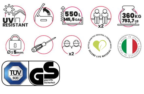 ODOLNOST VŮČI POČASÍ: Díky speciálnímu zpracování je tento box odolný proti škodlivému UV záření, což zajišťuje, že si jeho krása a funkčnost zachová po mnoho sezón.