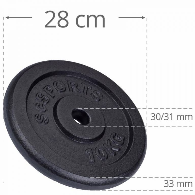 Robustní zátěžové kotouče jsou vyrobeny z vysoce kvalitní litiny jsou obzvláště odolné a ideální pro intenzivní trénink. Používají se nejen při posilování a crossovém tréninku – ale také ve fitness a rehabilitaci. Kotouče mají průměr otvoru 30/31 mm a jsou tak dokonale přizpůsobeny všem běžným činkám o průměru 30 mm. To zabraňuje klouzání nebo chrastění během tréninku. Aby se zabránilo korozi, jsou kotouče lehce naolejované. Olejovou vrstvu lze snadno setřít suchým hadříkem.
