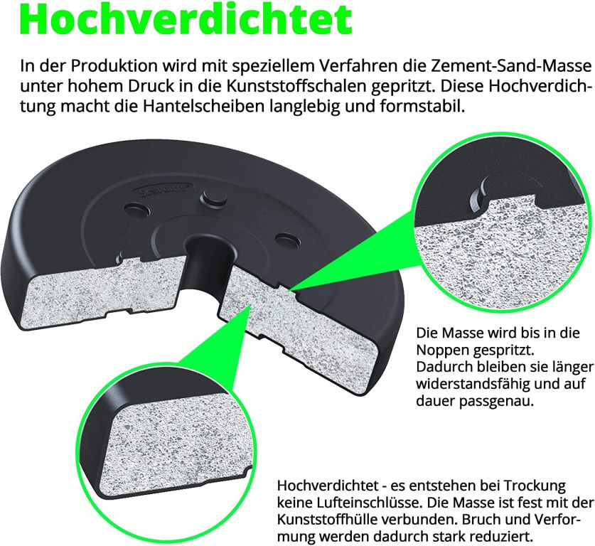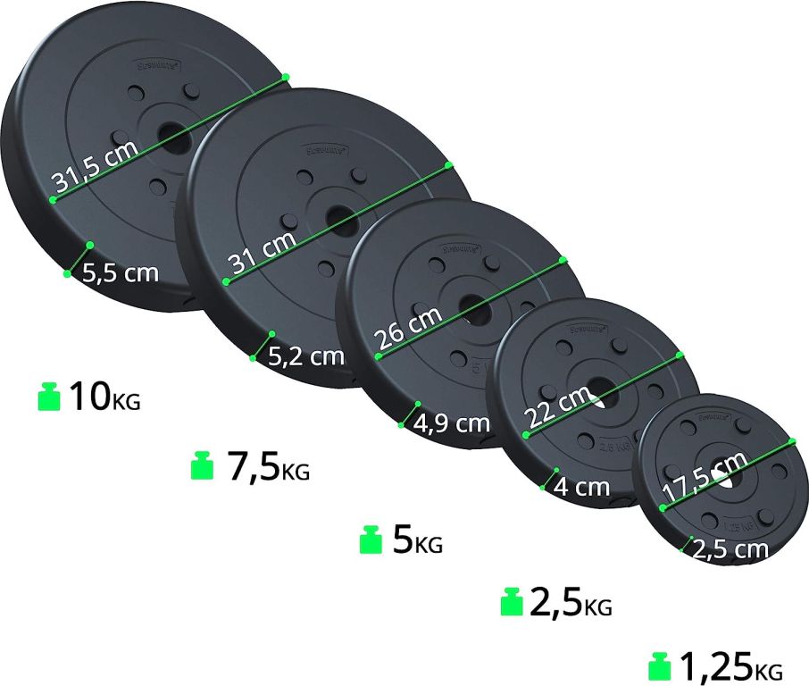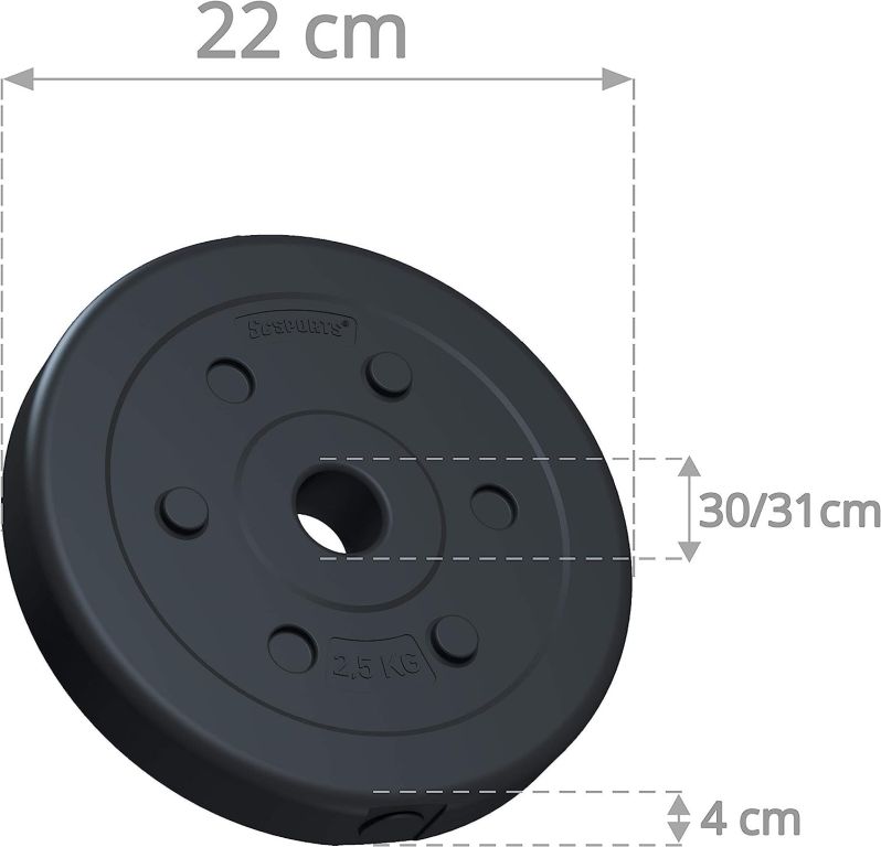 Kotouče jsou vyrobeny z vysoce kvalitního plastu a vyplněny hutněnou cementovou směsí. Díky tomu jsou nejen robustní a odolné, ale také šetrné k podlahám a tiché. Plastový povlak chrání podlahu před poškrábáním a vzájemně propojené drážky a výstupky minimalizují otáčení kotoučů, což usnadňuje jejich zvednutí z podlahy. Plastové kotouče mají průměr otvoru 30/31 mm, a proto se perfektně hodí pro všechny standardní činky o průměru 30 mm. Stručně řečeno, tyto kotouče jsou vynikající volbou pro každého, kdo chce budovat svalovou hmotu a zlepšit si celkovou kondici. Plastový povlak, vzájemně propojené drážky a výstupky a jejich kompatibilita se standardními činkami dělají z těchto kotoučů nutnost pro vaši domácí posilovnu. Pořiďte si sadu ještě dnes a posuňte svůj silový trénink na další úroveň!