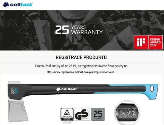 Univerzální tesařská sekera Cellfast pomůže při sekání větví, keřů a menších kmenů. Ergonomická a odpružená rukojeť ulehčí práci. Sekera váží pouhých 1,1 kg. Jemný protiskluzový povrch Safetouch pokrývá značnou délku rukojeti a zajišťuje bezpečné uchopení a komfort použití. Univerzální tesařská sekera je vhodná pro tesařské, stavební a úklidové práce. Její ergonomická, odpružená rukojeť nabízí lepší práci při zpracování dřeva. Protiskluzový povrch Safetouch na rukojeti zajišťuje komfort použití. Záruku si můžete prodloužit až na 25 let. Hned po zakoupení zboží se registrujte na oficiálních stránkách výrobce a postupujte podle jeho pokynů.