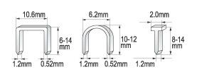 Sešívačka se plní dle potřeb typickými, obdélníkovými sponkami délky 6-14 mm, pro upevnění elektrických kabelů zakřivenými sponkami délky 10-12 mm, či se dají použít hřebíky délky 10-14 mm.