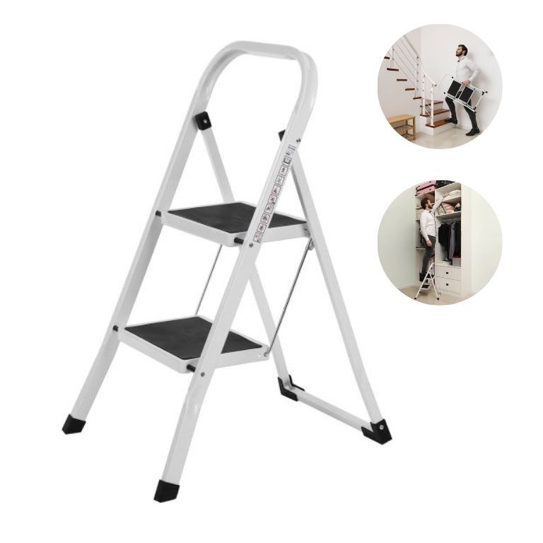Zobrazit podrobnější popisBezpečný pomocník do domácnosti: protiskluzové 2 stupně, stabilní ocel a nosnost 150 kg. Po složení jen 4,5 cm na šířku.