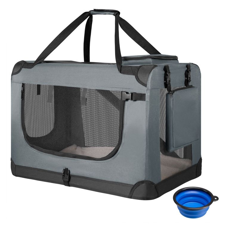 Skládací transportní box pro psy L s miskou a pelíškem, šedá
