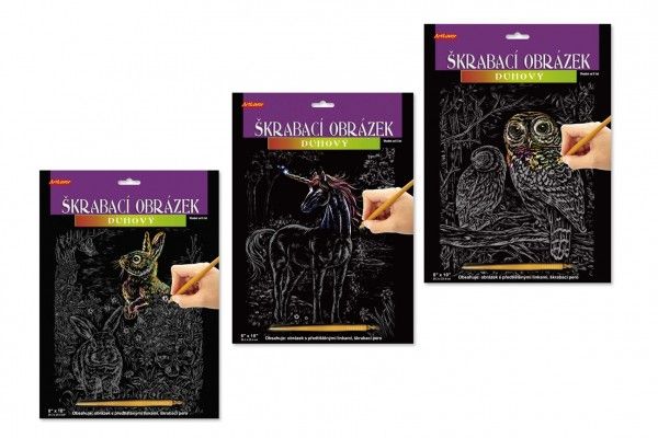Škrabací obrázek duhový A4 23x32cm 3 druhy