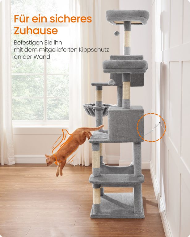 Vytvořte svému mazlíčkovi ráj přímo doma. Tento kočičí strom nabízí vše, co kočka potřebuje – šplhání, odpočinek i bezpečný úkryt. Měkké pelíšky a prostorný hamak jsou ideální na lenošení, zatímco škrabadla ochrání váš nábytek.
