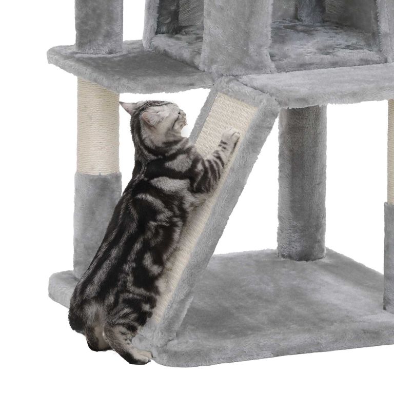 Odolná konstrukce z dřevotřísky a pevná základna zajistí bezpečí. Sisalové sloupky a rampa podporují zdravé drápky. Montáž je jednoduchá, údržba nenáročná.