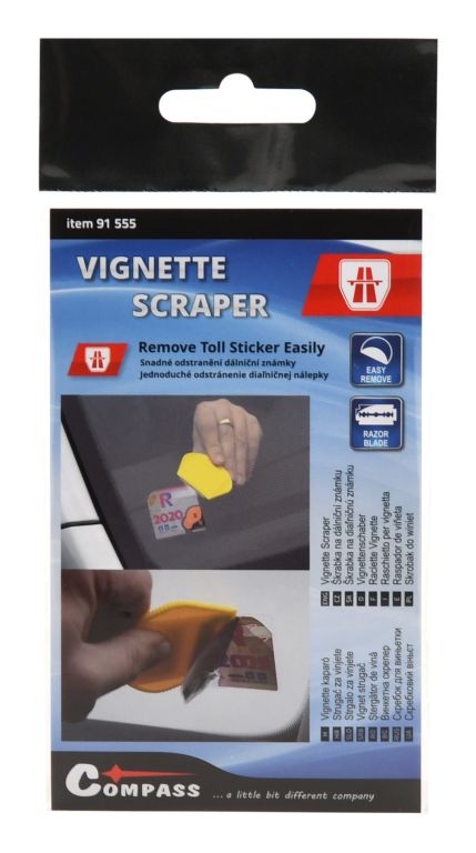 Škrabka na odstranění dálniční známky - snadno odstraní jakýkoliv druh nálepek a známek ze skla.