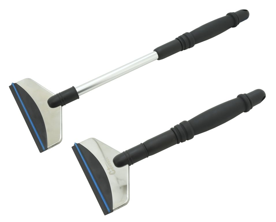 Škrabka je zhotovena z vysoce odolného měkkého plastu pro bezpečné použití, bez poškození skel.