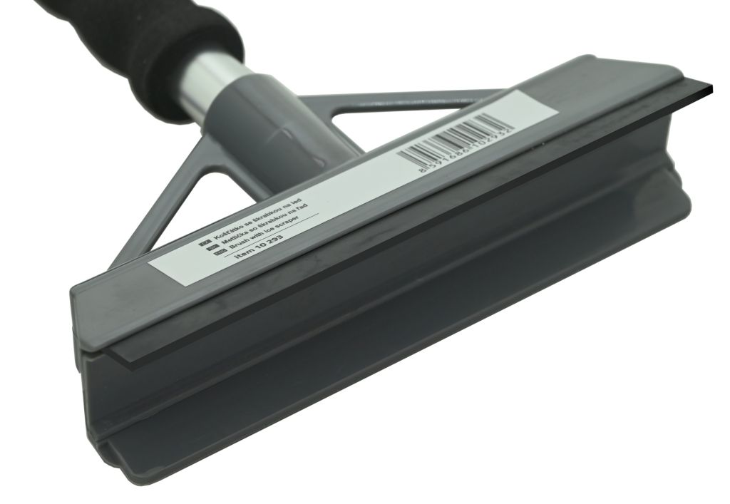 Škrabka s košťátkem délky 60 cm. Jeden konec je opatřen košťátkem délky 21 cm, druhý konec je opatřen gumovou stěrkou a škrabkou šíře 13,5 cm.