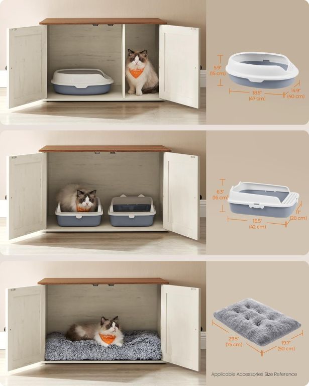 Dopřejte své kočce soukromí a sobě krásný interiér. Tato skříňka na kočičí WC v bílo-hnědém provedení se stane stylovým doplňkem každé domácnosti. Vaše kočka získá klidné místo a vy už nebudete muset řešit pohled na nevzhlednou toaletu.