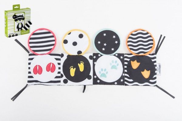 Oboustranná textilní knížka pro nejmenší je určena do kočárku, postýlky i na hrací deku.