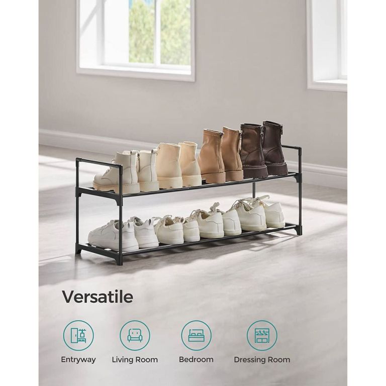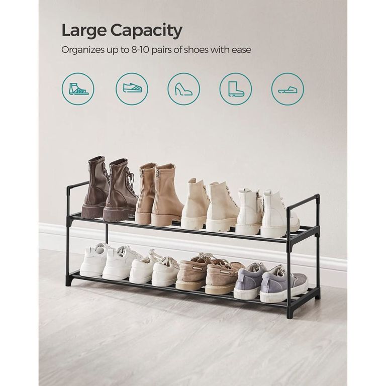 Udržujte svůj domov uklizený a stylový s kovovým 2patrovým stojanem SONGMICS. Ideální pro předsíně, ložnice či obývací pokoje, pomáhá rychle a přehledně uložit až 10 párů bot. Díky modernímu černému designu se hodí do jakéhokoli interiéru a šetří cenný prostor.