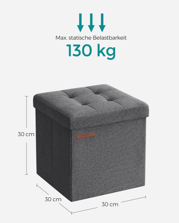 Elegantní taburet SONGMICS s úložným prostorem, nosností 130 kg a rozměry 30×30 cm. Praktický, stylový a skládací.