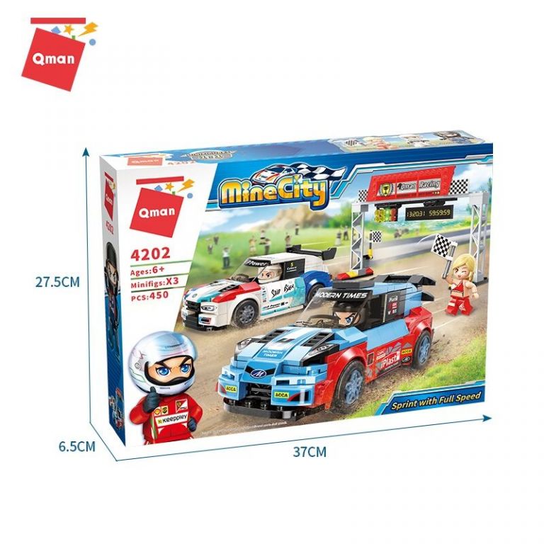 Pořádný závod si malý závodník nejvíce užije s autem, které si sám postaví. Stavebnice Qman MineCity 4202 obsahuje 450 dílků pro složení dvou závodních aut a vítězného cílového oblouku. Součástí balení jsou také 3 minifigurky – 2 závodní řidiči a vlajkonoška připravená závod odstartovat.
