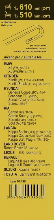 Délky stěračů a systém uchycení na ramínko jsou přizpůsobeny vybraným vozům (viz tabulka použití). Vysoce kvalitní pružný člen plochého stěrače zajišťuje stejnoměrný tlak grafitového břitu v celé jeho délce, což zamezuje rozmazávání nečistot a vytváření pruhů.