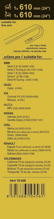 Délky stěračů a systém uchycení na ramínko jsou přizpůsobeny vybraným vozům. Vysoce kvalitní pružný člen plochého stěrače zajišťuje stejnoměrný tlak grafitového břitu v celé jeho délce, což zamezuje rozmazávání nečistot a vytváření pruhů.
