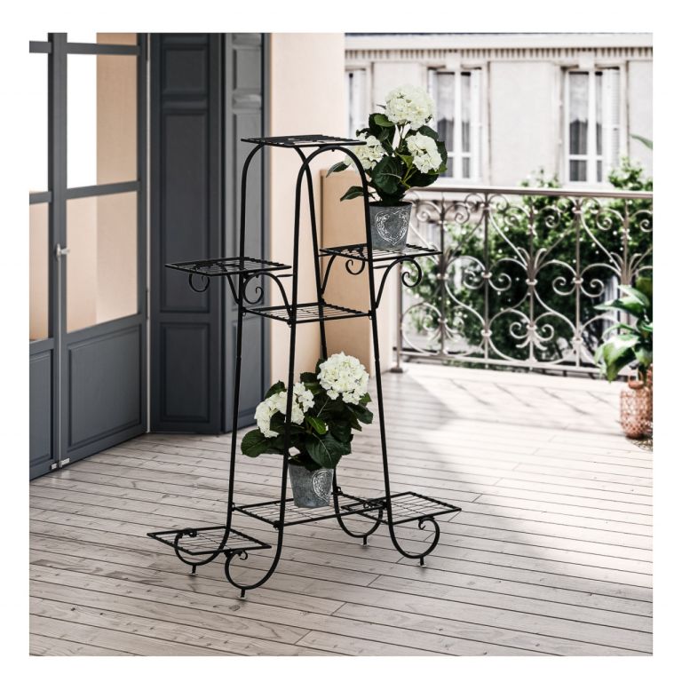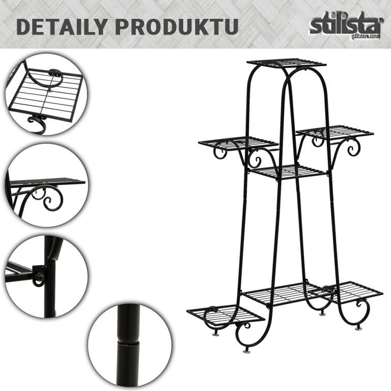 Náš stojan na květiny je vyroben z odolného práškově lakovaného ocelového rámu. Klasický design polic se stylově hodí do každého interiéru i exteriéru. Police pro rostliny nabízejí dostatek prostoru pro rostliny různých velikostí a lze je použít také jako odkládací police např. pro dekorativní prvky.