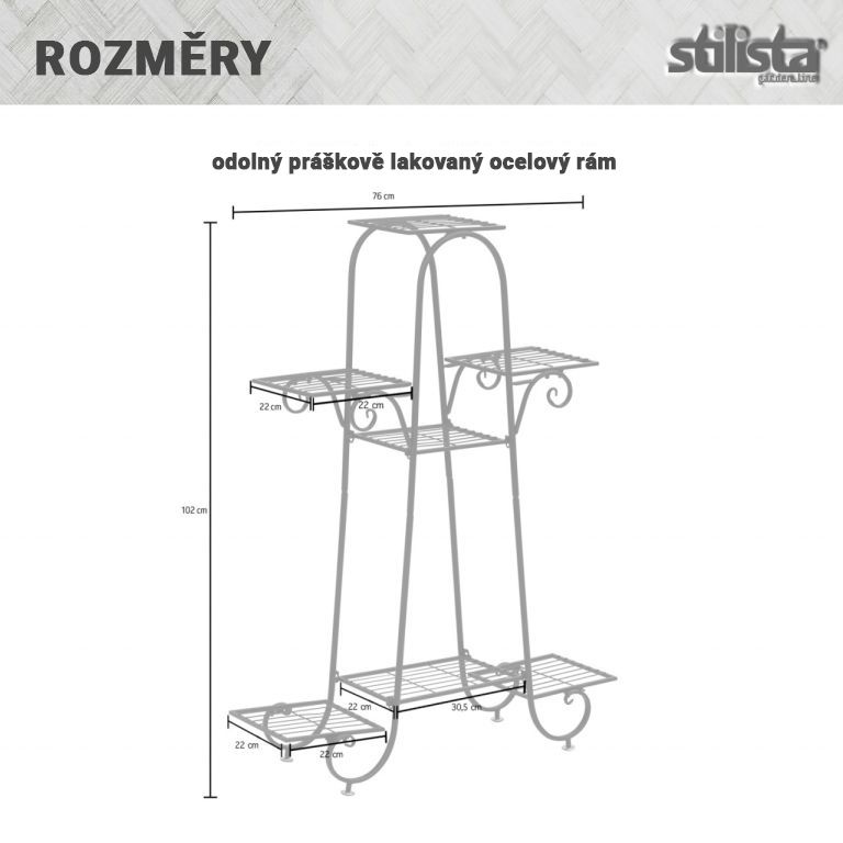STILISTA Stojan na rostliny, 102 x 76 x 24 cm, ocel